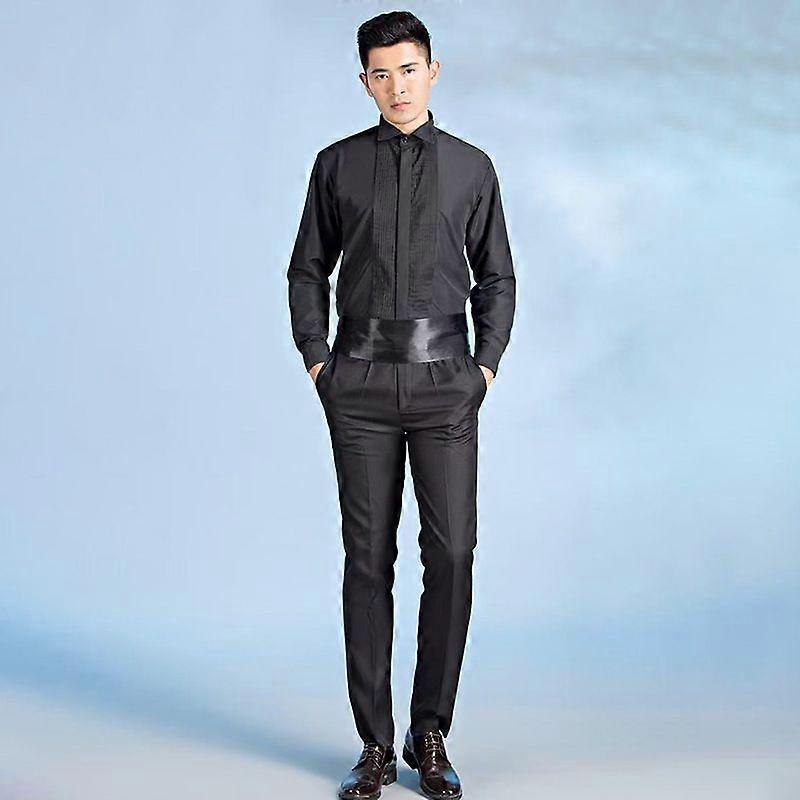 Long-Sleeved White Fitted Shirt, Men's Stage Chorus Performance Dress, Tailcoat, Wedding Best Man's Suit, Pleated Shirt