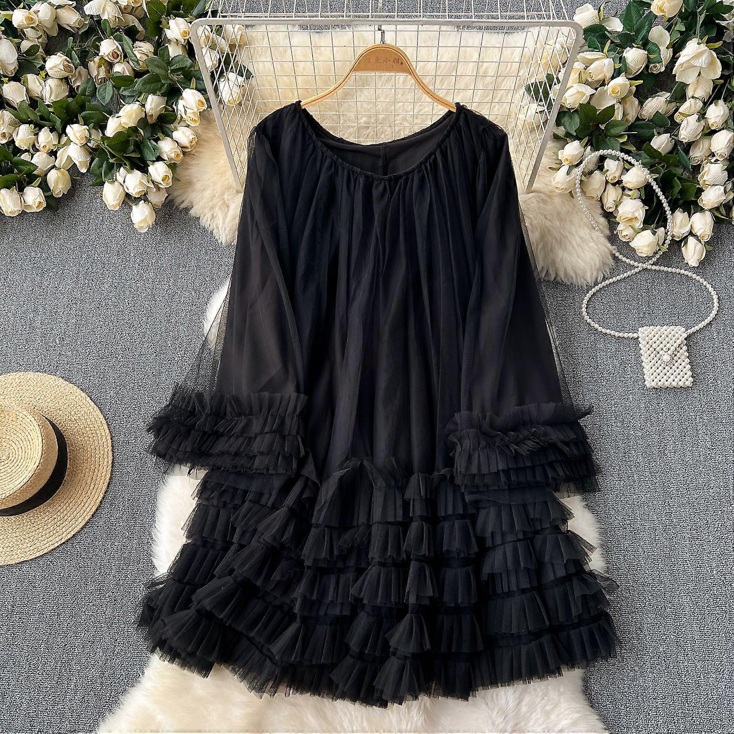 Women's Niche Retro Court Style Loose Slimming Mesh Fluffy Ruffled Skirt