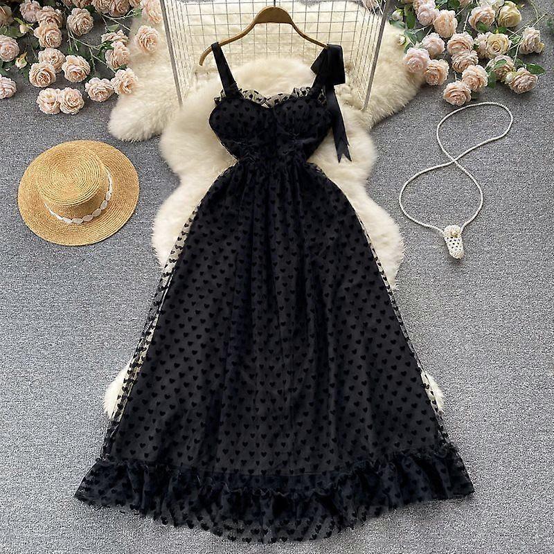 Pattern:Dots Process:Mesh Style:Suspenders Combination Form:Single Piece Skirt Length:Long Dress Skirt Style:A-Line Skirt Collar Style:V-Neck Sleeve Style:Regular Sleeve Length:Sleeveless Waist Shape:High Waist Colour:Black Size:For S, Contact Customer Service For A Single Item; For M, Contact Customer Service For L; For Xl, Contact Customer Service For 2Xl Style Type:Fresh And Sweet Front Flap:Head Cover Style:Princess Style Style Type:Elegant Temperamen