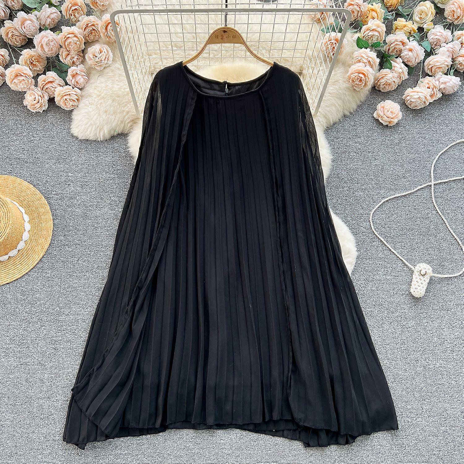 Elegant Designer Cloak Dress With Spring-Inspired Design, Women's Heavy-Duty Pressed Pleated Loose-Fitting Short Skirt That Flatters The Figure