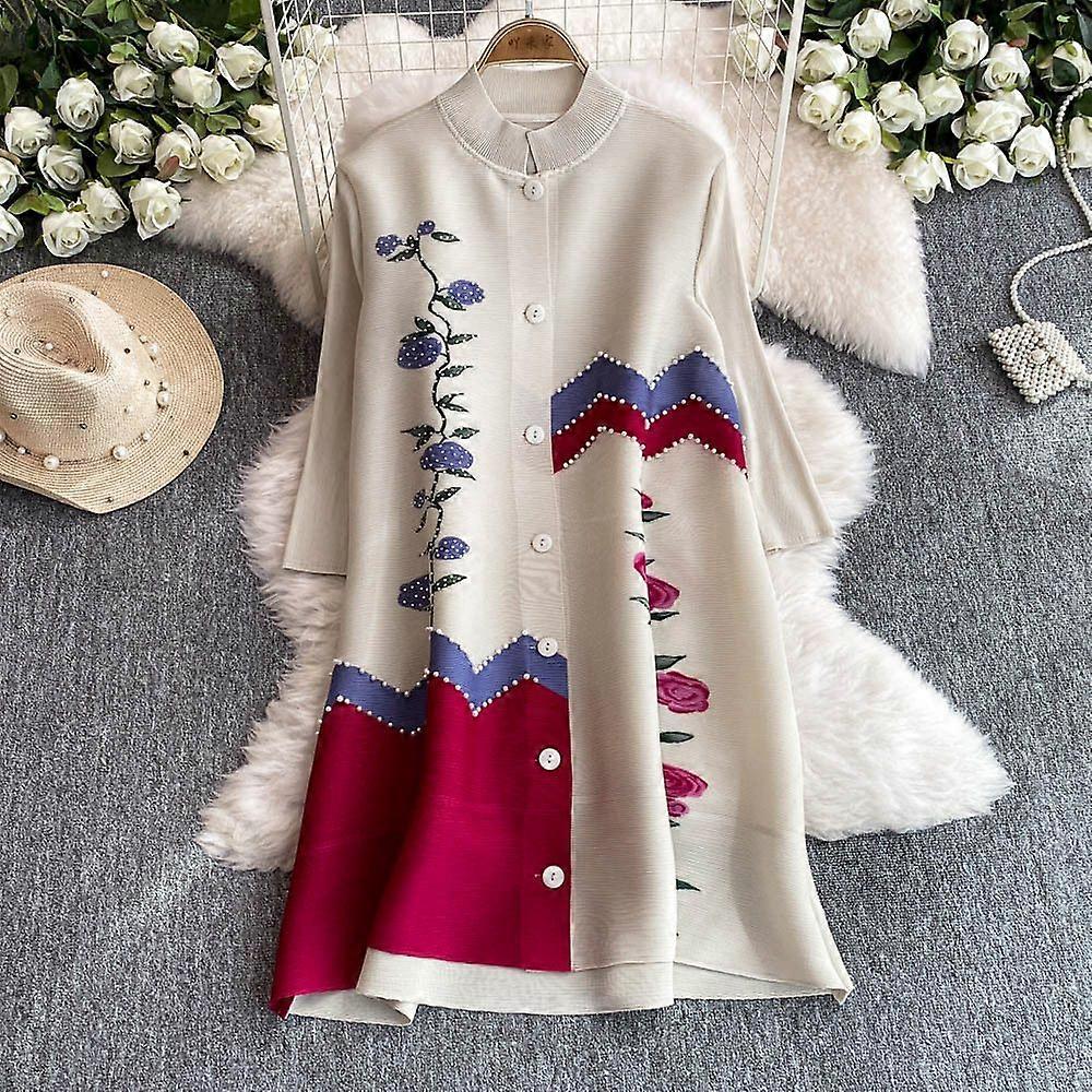 Pleated Windbreaker Coat Mid-Length Big Brand Early Autumn Green Single-Breasted Cardigan Spring Dress For Women