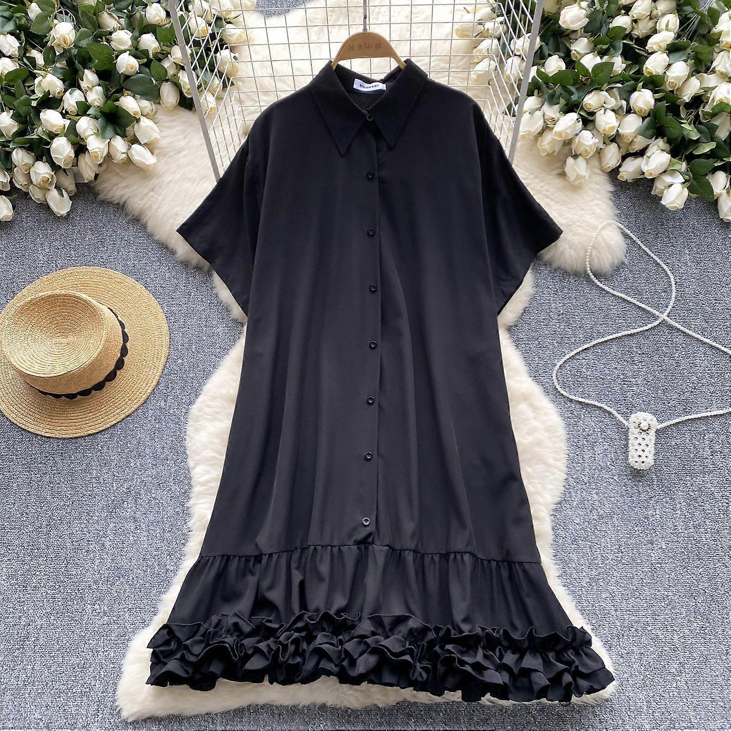 Style Dress Women's Summer Design Sense Niche Loose Slimming Short-Sleeved Single-Breasted Ruffled Shirt Skirt