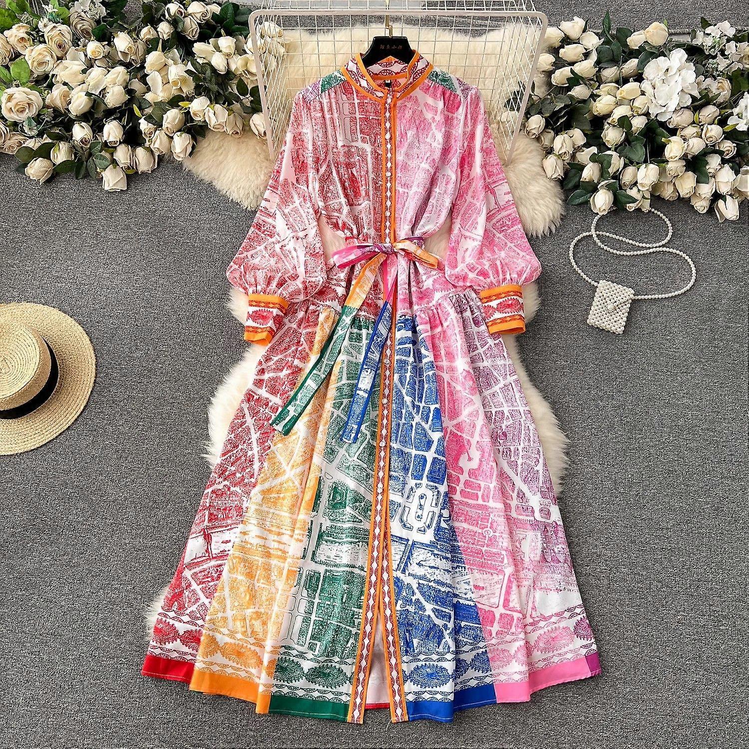 Light Luxury High-Grade Printed Dress Women's Lantern Sleeve Waist-Tight Design Sense Niche Chic Super Fairy Dress