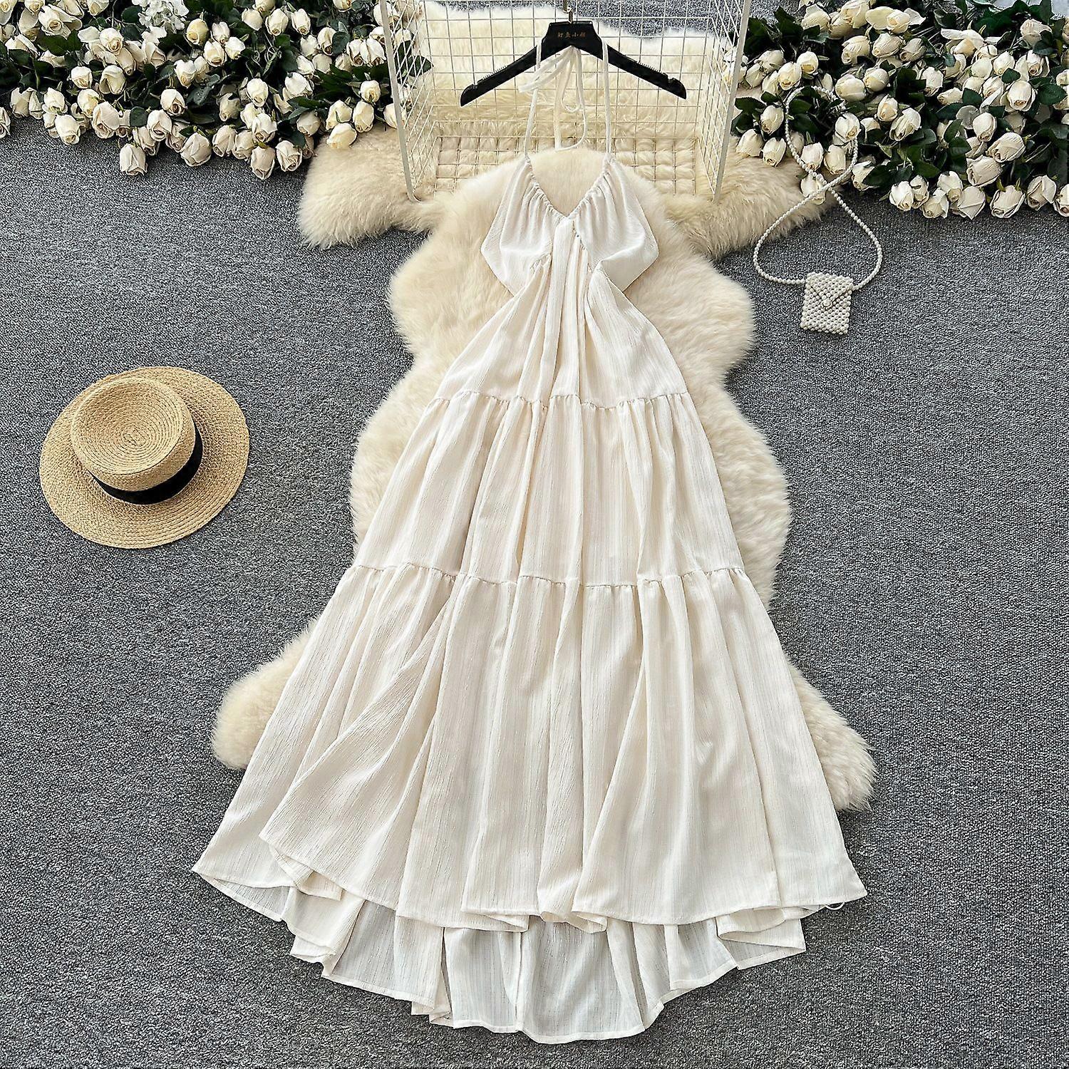Fairy Vacation Dress Summer Design V-Neck Halter Strap Strap Backless Over-The-Knee Long Dress