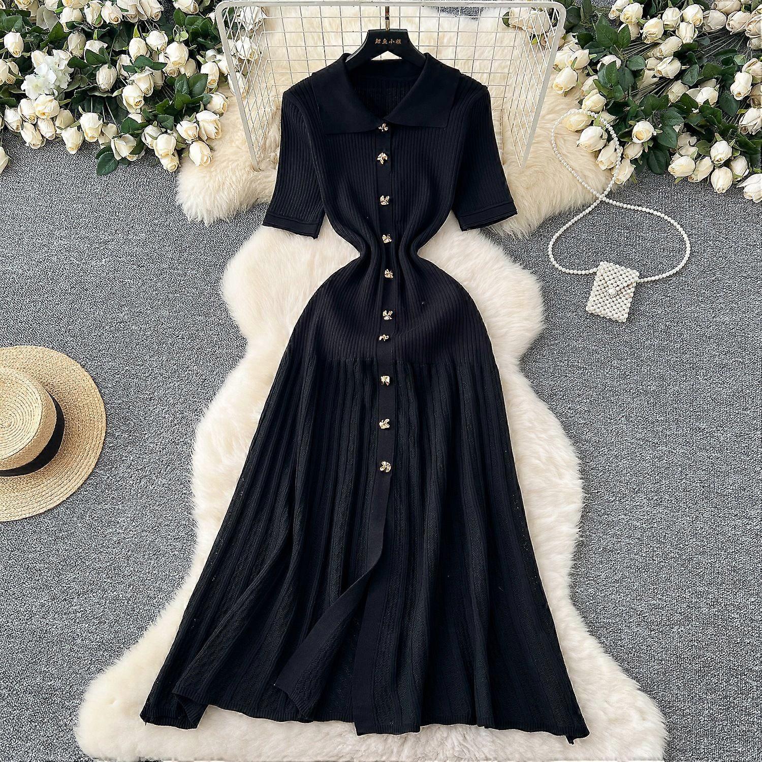 Inner Sweater Dress Women's Winter Elastic Slim-Fit Slim-Fit Socialite Style Single-Breasted Knitted Long Dress