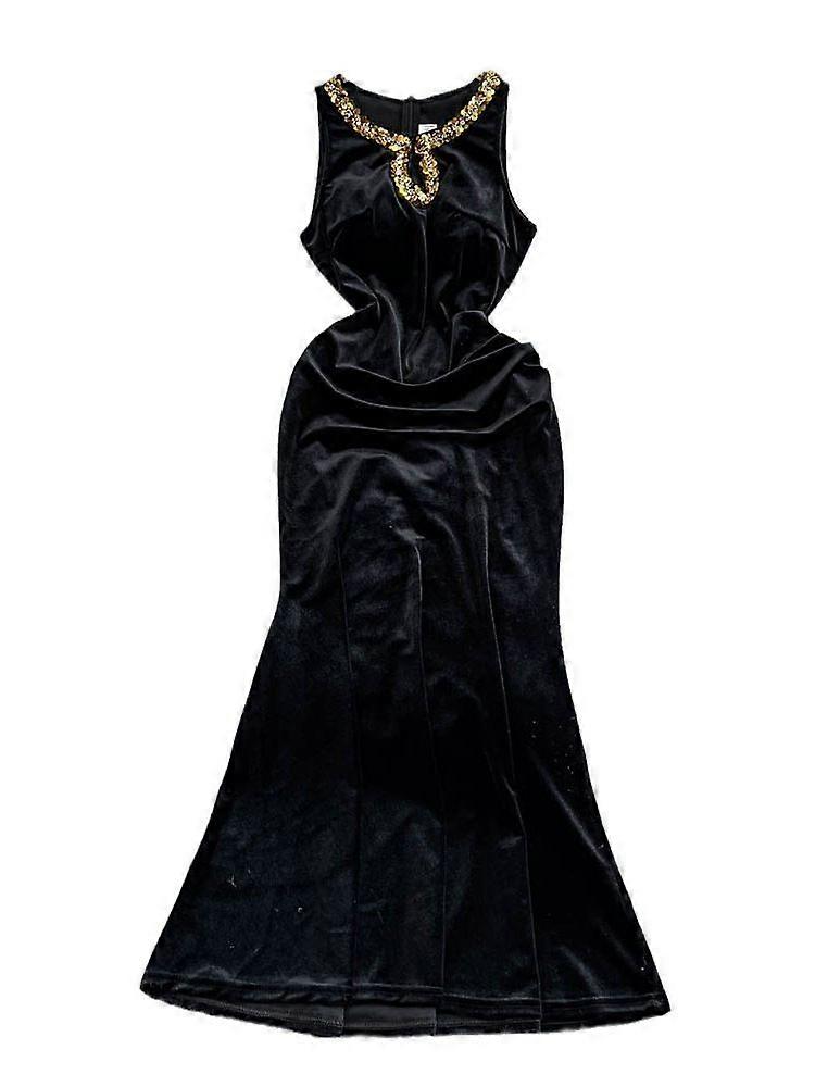 Velvet Halter-Neck Dress For Women, Early Autumn Heavy Industry Sequined Black Dress, High-End Evening Dress Long Dress 0447
