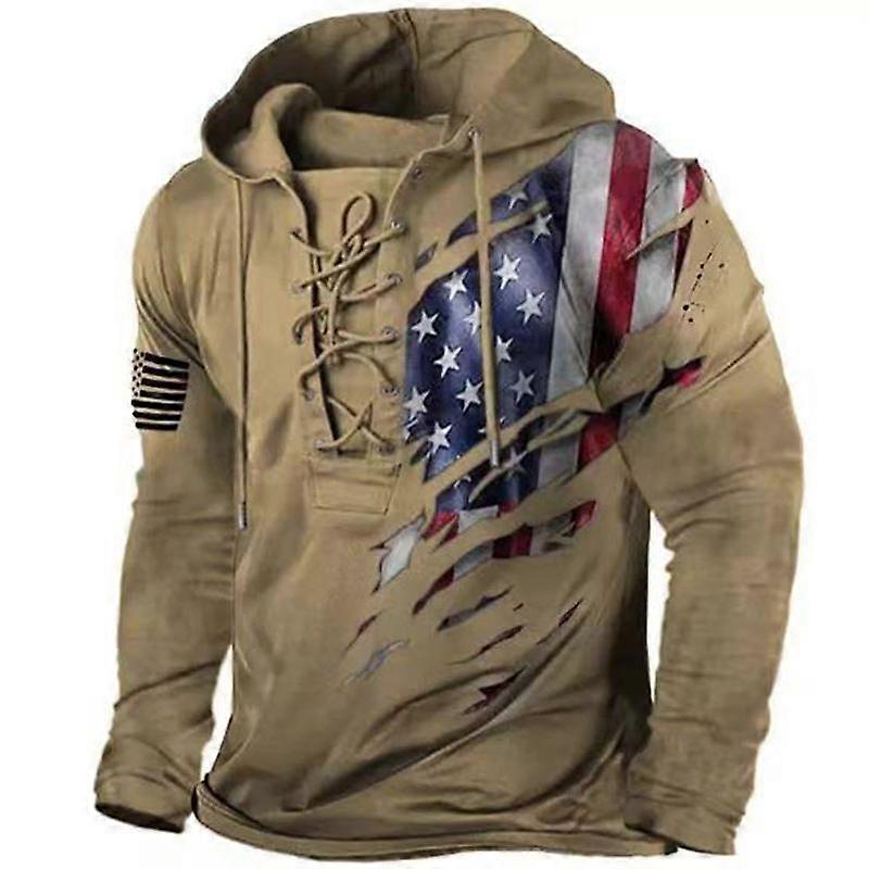 Plus-Size Men's Outdoor Retro Lace-Up Hooded Long-Sleeved Sweatshirt Autumn Casual Top