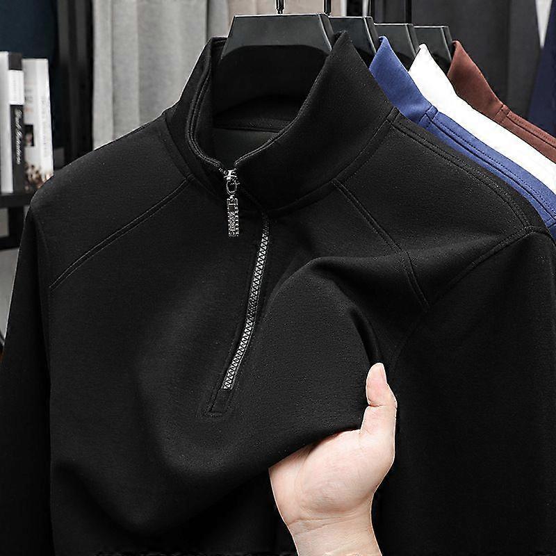 High-End Men's Stand-Up Collar Zippered Long-Sleeved T-Shirt Base Layer, Spring And Autumn Mid-Blue Top