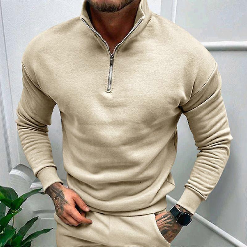 Men's Autumn And Winter Casual Fleece Solid Color Long-Sleeved Half-Zipped Stand-Up Collar Sweatshirt
