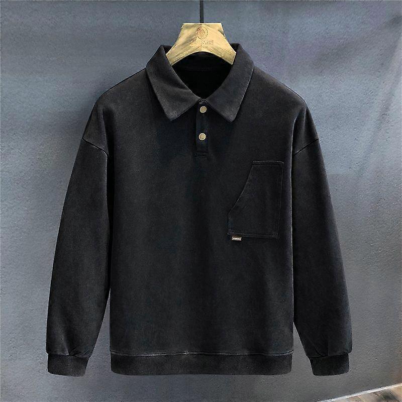 380G Heavy Island Cotton American Retro Style Polo Collar Hoodie For Men, Spring And Autumn Trendy Casual Top For Men