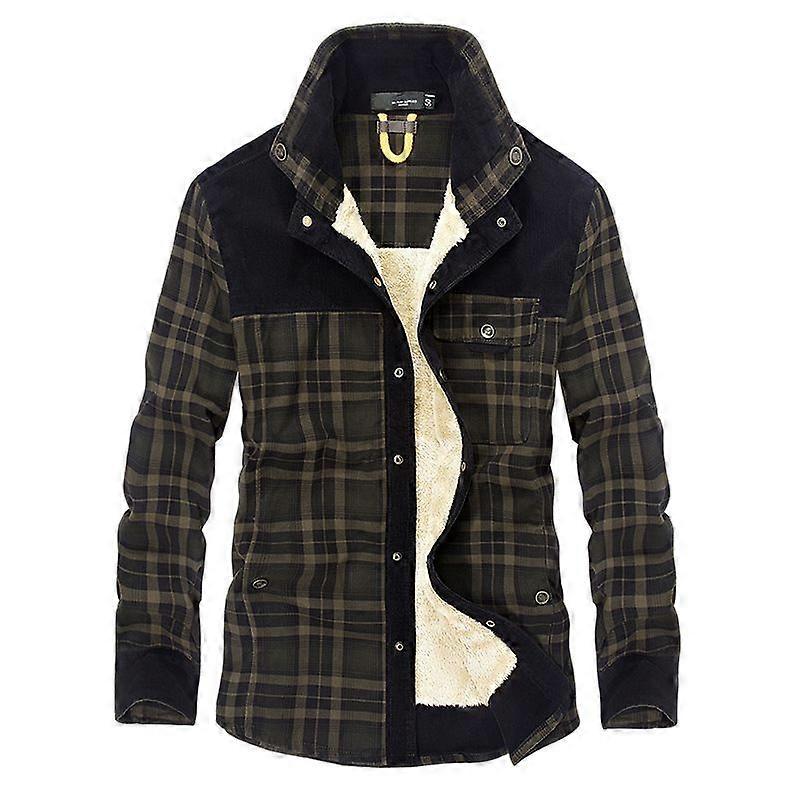 Wish Men's Fleece, Thickened Long-Sleeved Checked Shirt, Warm Business, Casual And Fashionable Cotton Shirt Jacket For Men