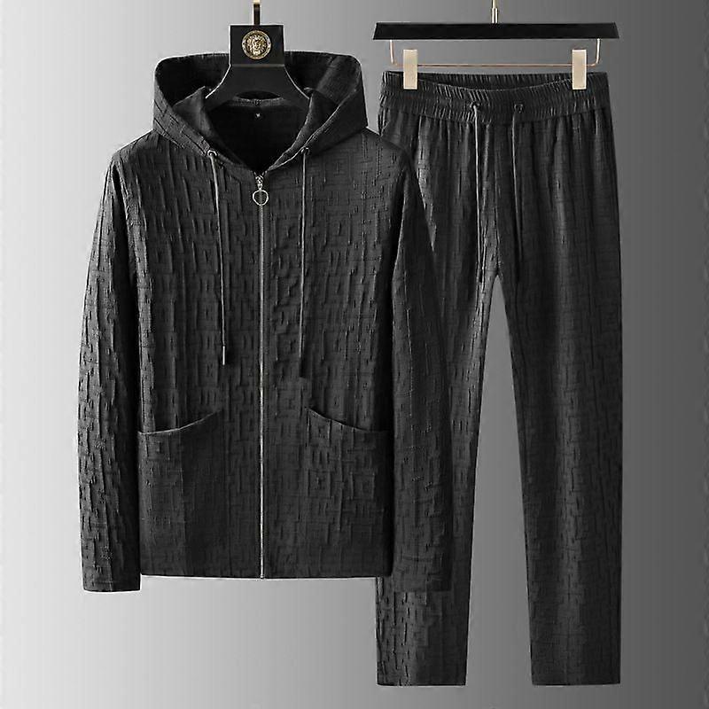 High-End Linen Men's Casual Set For Spring And Summer, Cotton And Linen Long-Sleeved Thin Hooded Sweatshirt Cardigan Sports Two-Piece Set