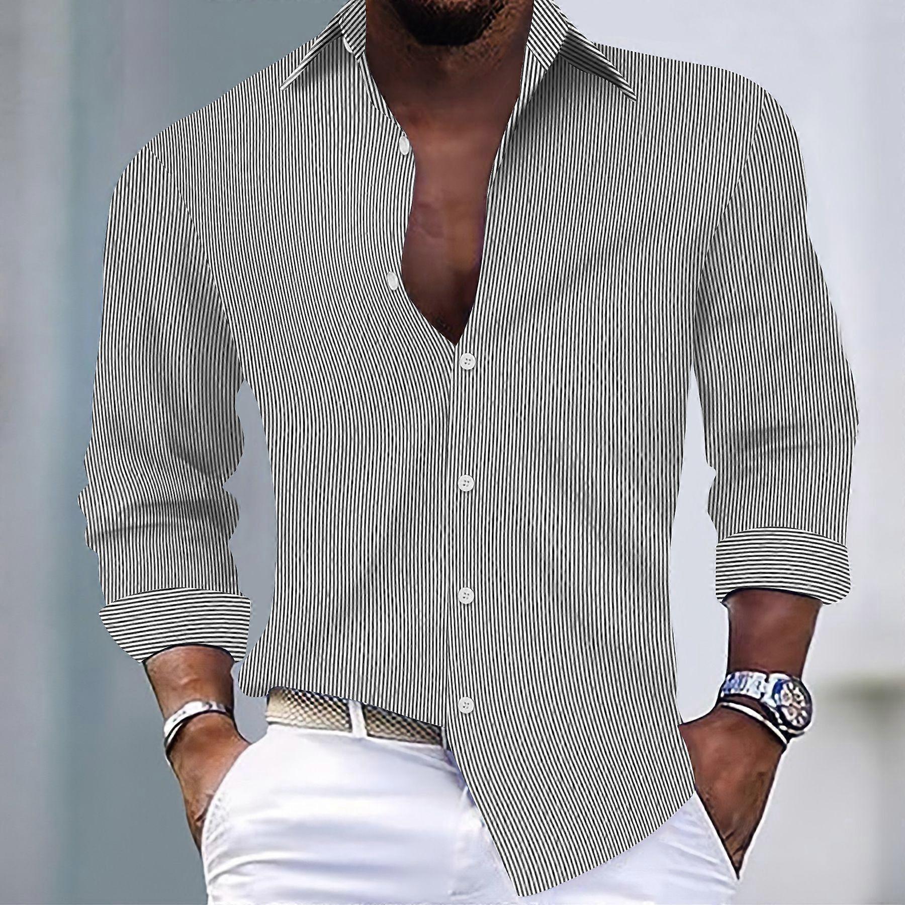 Fashion Men's Yarn-Dyed Striped Casual Long-Sleeved Shirt
