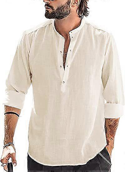 Casual Men's Loose Shirt Men's Fashionable Stand Collar Cotton Linen Long Sleeve Color