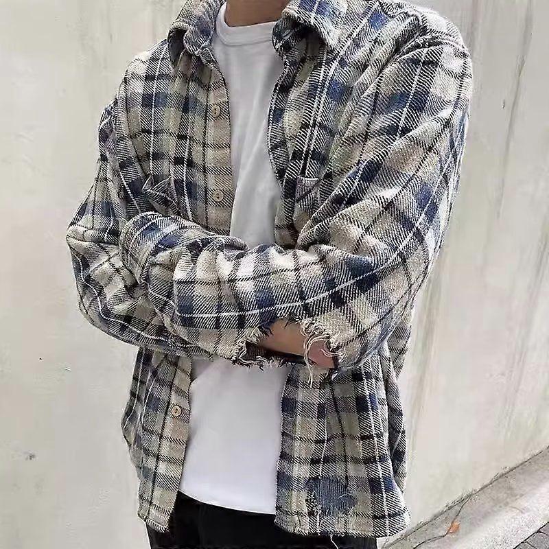 Japanese Style Versatile Long Sleeve Shirt Men's Trendy Shirt Spring Standard Simple Plaid Shirt Idle Style