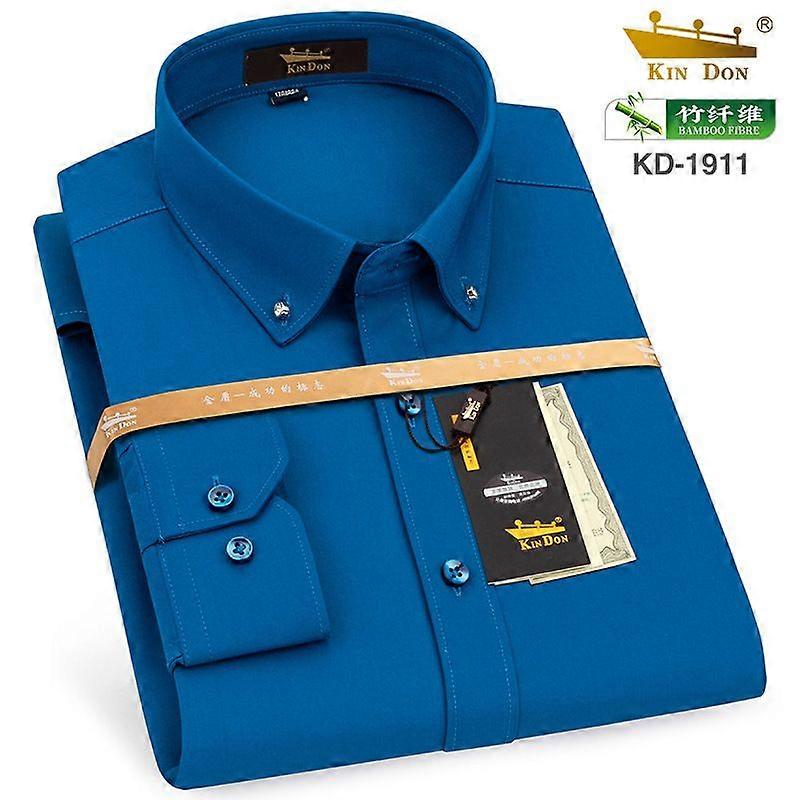 Shield Men's Shirts, Blue Business Shirts, Men's Long-Sleeved Shirts, Professional Korean-Style No-Iron Slimming One-Inch Shirts, Trendy Men
