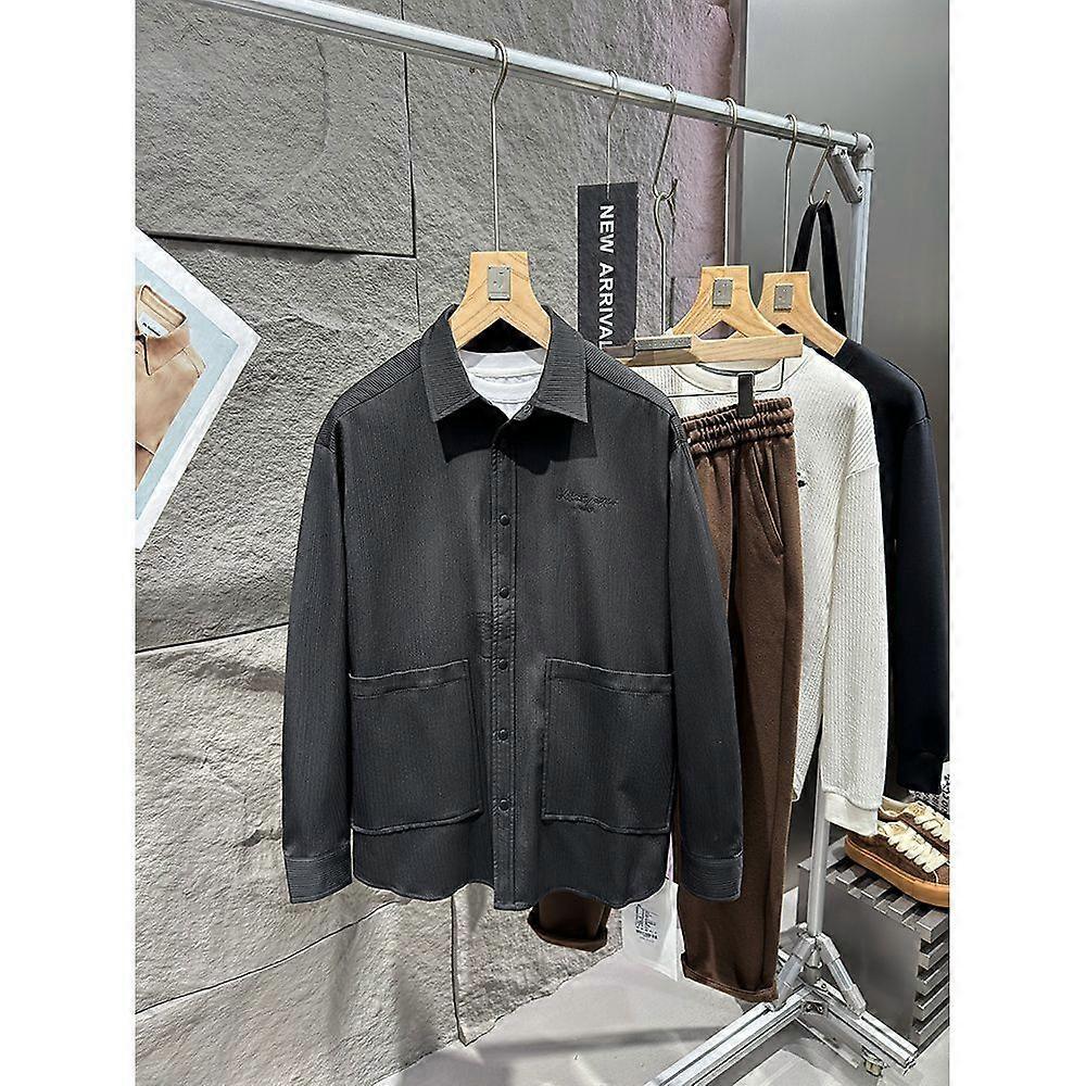 Treasure Of The Town Store! Uus Handle! Spring Exquisite Chest Embroidery Men's Black Long Sleeve Shirt Coat 328