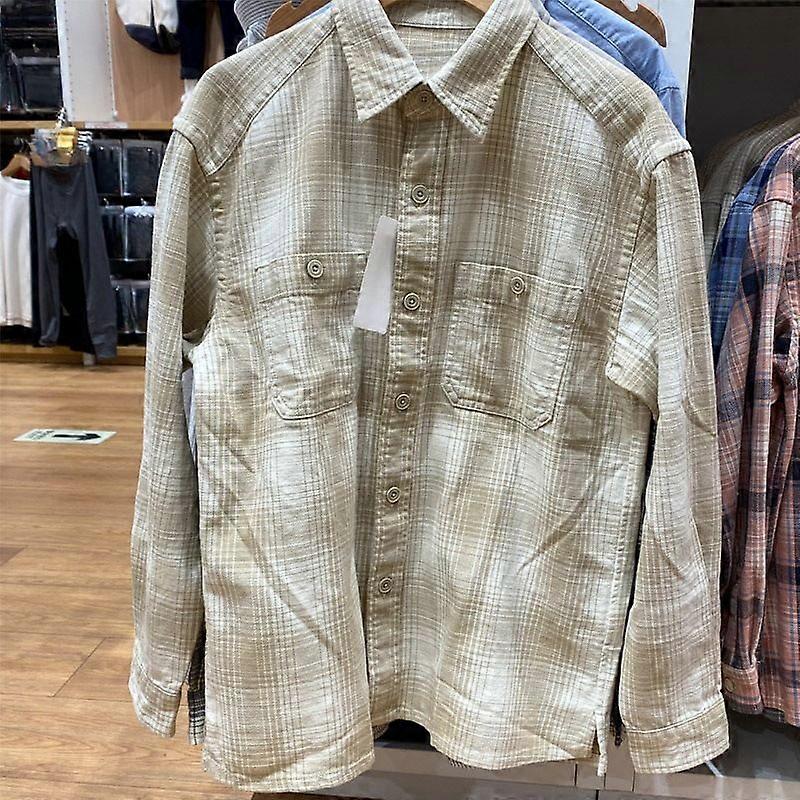 Autumn Men's Clothing: Bamboo Joint Cotton Checked Shirt Jacket, Loose Shirt, Long-Sleeved Light Jacket E476899/476900