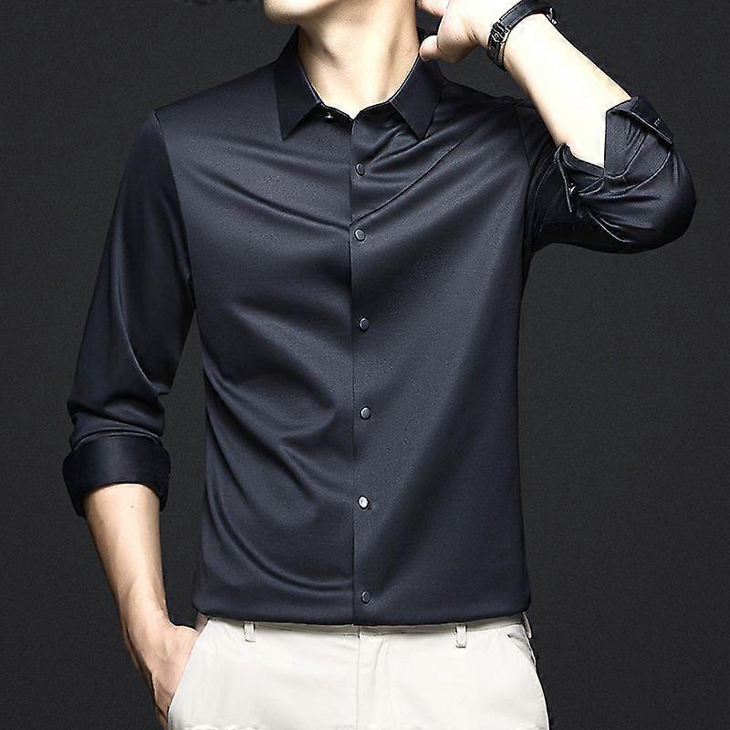 High-End Men's Long-Sleeved Shirt For Spring And Autumn, Business And Casual, Wrinkle-Free Medium Stretch Wrinkle-Free Shirt With Drape