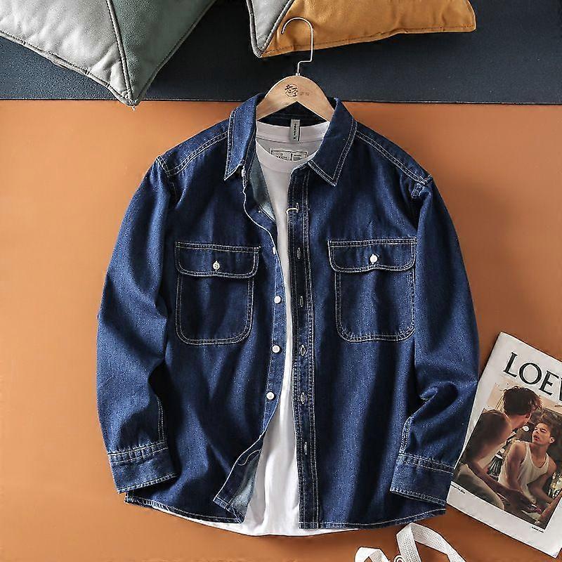 Denim Shirt Men's Long-Sleeved American Casual Shirt Youth Jacket Men's Trendy Men's Design Sense