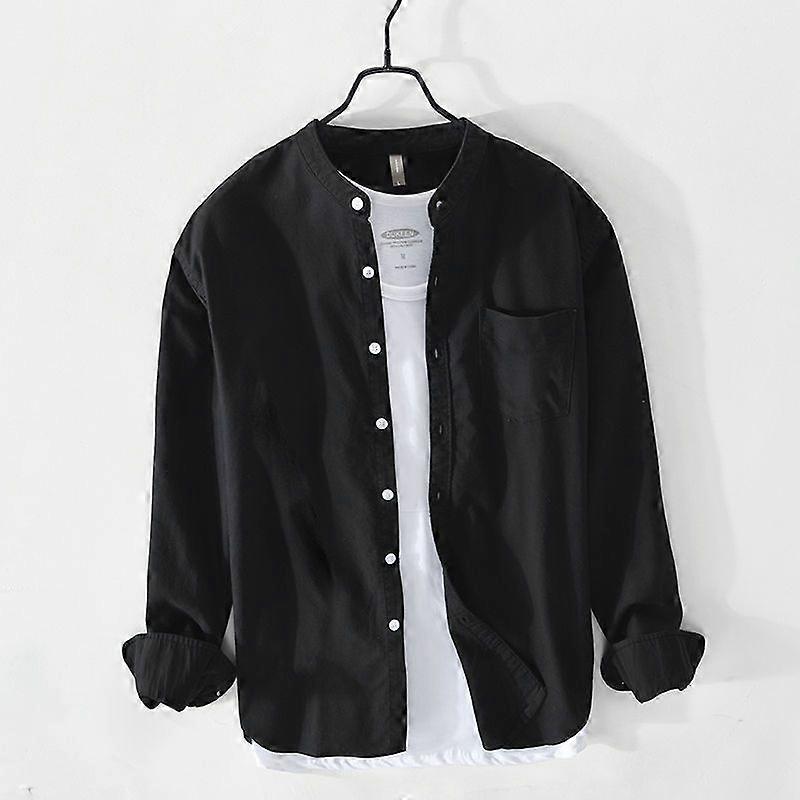 Spring And Autumn Men's Oxford Casual Long-Sleeved Shirt Cotton Versatile Loose Comfortable Stand Collar Men's Shirt