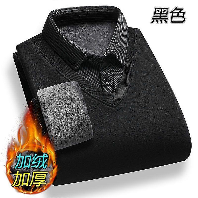 Men's Sweater Men's Winter Fleece-Lined Thickened One-Piece Fleece Knitted Shirt Collar Business Warm Sweater Fake Two-Piece Trend