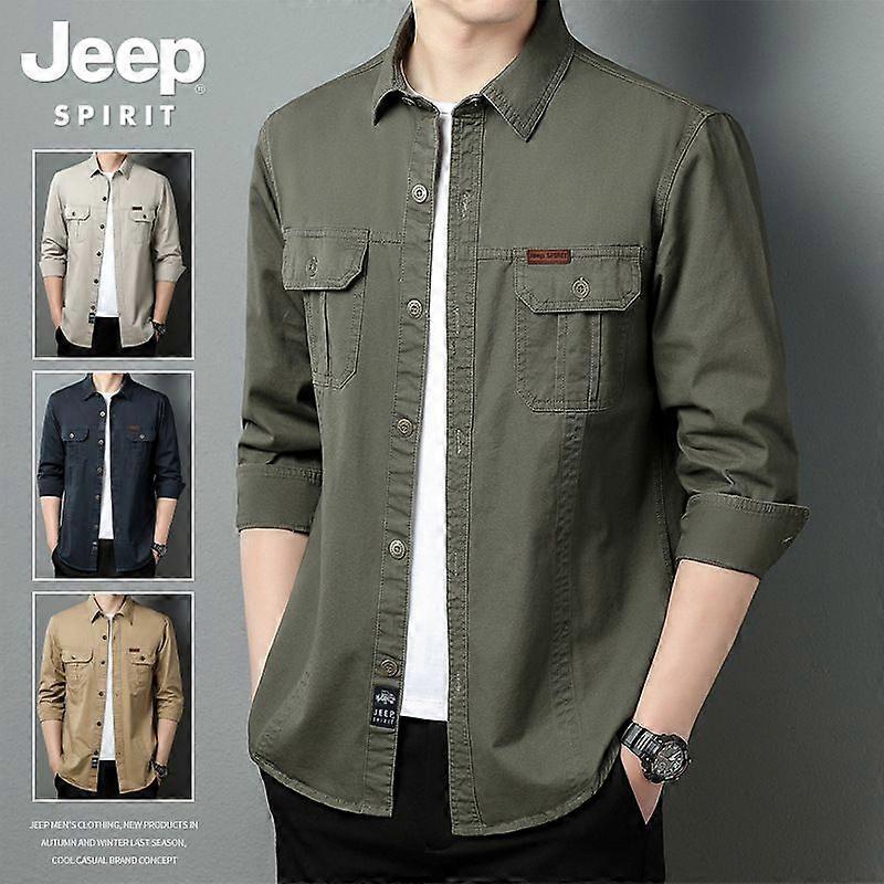 Jeep Spirit Brand Long-Sleeved Shirts For Men's Spring And Autumn, Korean-Style Casual And Versatile Washed Cotton Workwear
