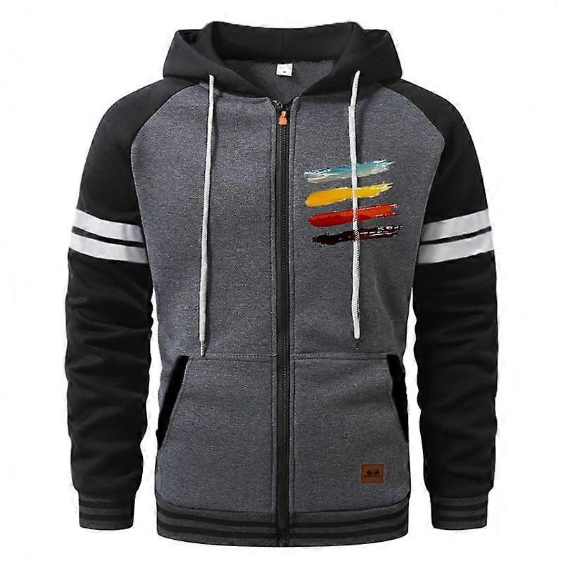 Men's Zipper Color-Blocked Hoodie For Autumn And Winter With Fleece Casual Hoodie