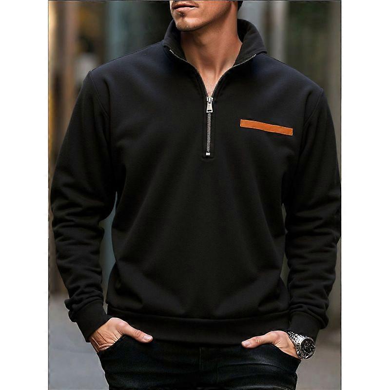 350G Men's Sweater Winter Fleece-Lined Half Zipped Stand Collar Pullover Solid Color Casual Sweatshirt Men's Fashion