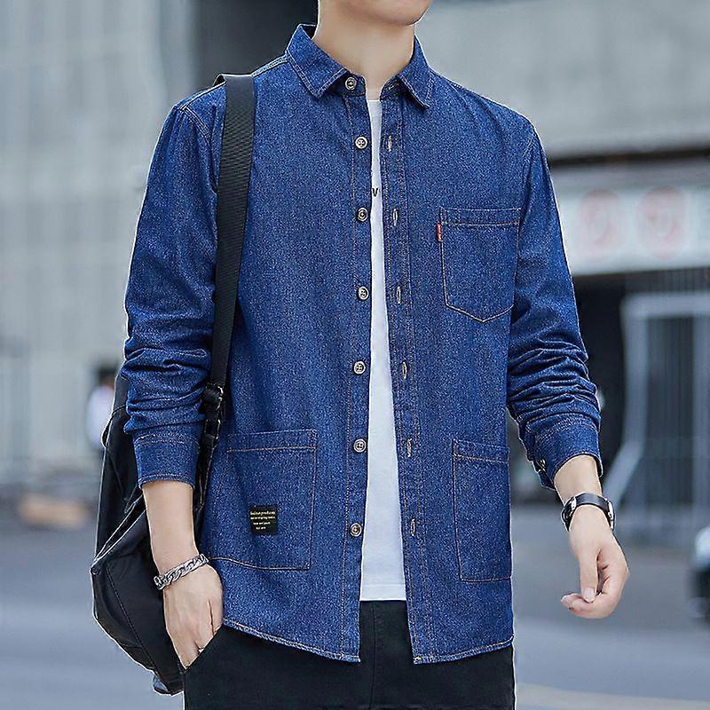 Spring And Autumn Style Pure Cotton Denim Shirt For Men, Long-Sleeve Hong Kong-Style Casual Shirt, Autumn Jacket Shirt