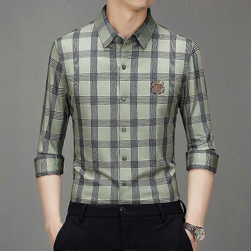Men's Long-Sleeved Shirt Men's Spring And Autumn Long-Sleeved Medium-Light Luxury Business Plaid Shirt Dad Fashion Shirt