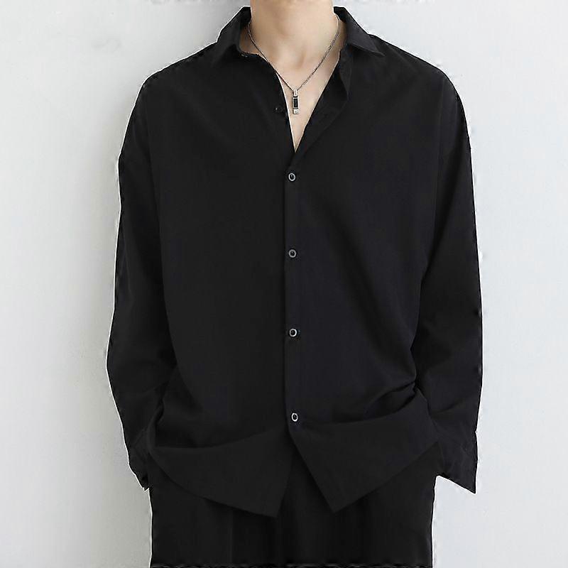 Men's Casual Loose Ice Silk Drape Black Shirt Men's Long-Sleeved Spring And Autumn Cool And Stylish Dk Base Men's White Shirt