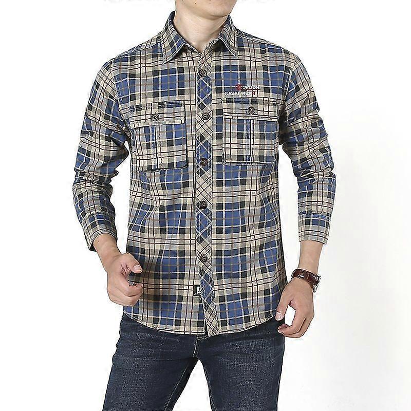 Spring And Autumn Men's Plaid Long-Sleeved Shirt Men's Casual Cotton Large Size Outdoor Shirt Cotton 5527
