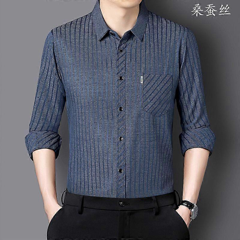 Spring And Autumn Mulberry Silk Long-Sleeved Shirt Men's Real Pocket Business Casual Non-Ironing Striped Shirt Men