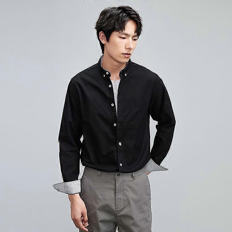 Autumn Cotton All-Match Solid Color Shirt Men's Simple Art-Style Single Wear Lapel Commuter Young Single Wear Coat