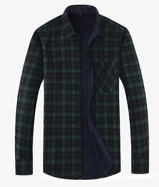 Autumn And Winter Size Plus Velvet Padded Warm Plaid Shirt Father Men's Long Sleeve Winter Men