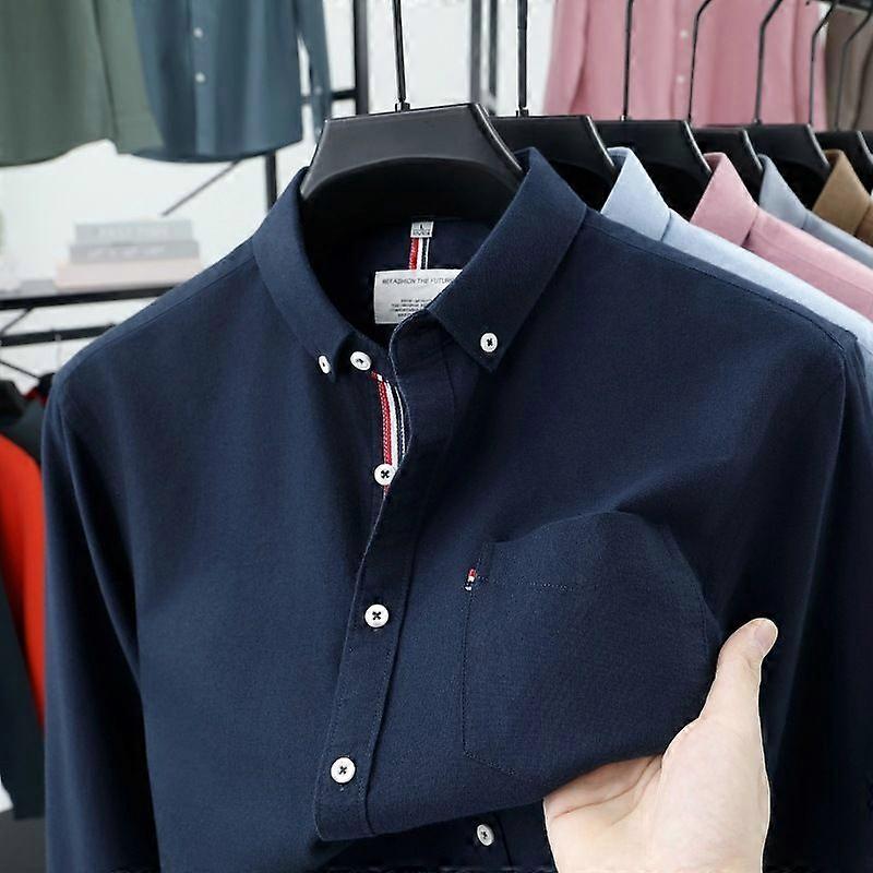 High-End Oxford 100% Cotton Long-Sleeve Shirt For Men, Solid Color Business Pocket Casual Workwear Shirt, Trendy Style