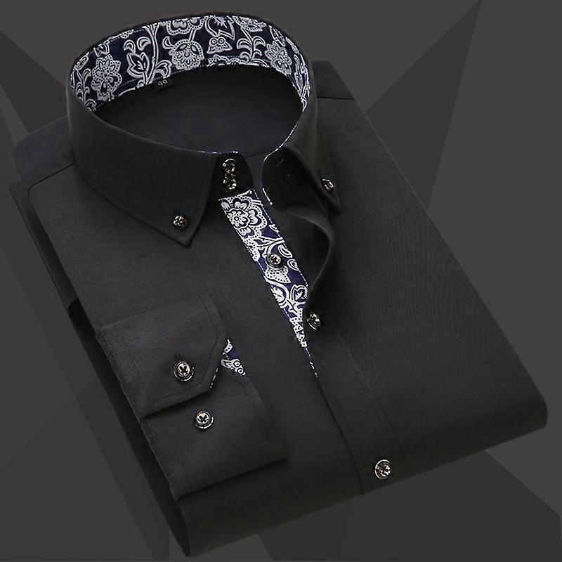 Men's Korean-Style Slim-Fit Long-Sleeved Shirt, Mid-Green Business Casual Blue And White Porcelain Men's Shirt, Men's Clothing