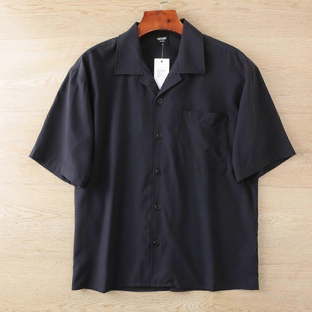 Classic Japanese Style ~ Cuban Collar Style Summer Men's Solid Color Loose Short Sleeve Shirt Top Shirt Generation Hair