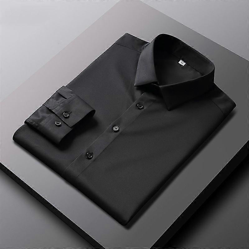 Solid-Color Stretch Men's Long-Sleeved Shirt, Men's Fashion Shirt, Slimming Men's Wear