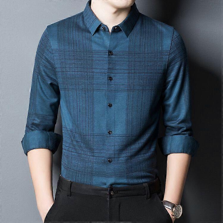 Spring And Autumn Men's Long-Sleeved Shirt Striped Non-Ironing Shirt Fashionable Shirt Containing Wool Extra Thick Casual Top