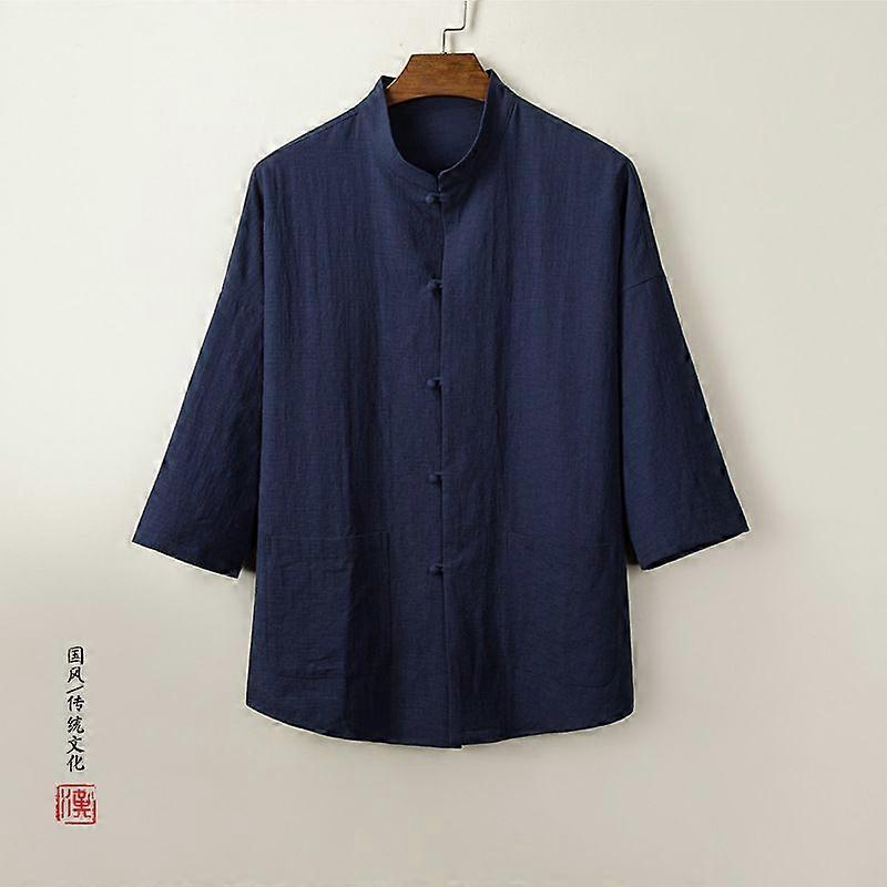 Men's Summer Loose Linen 3/4 Sleeve Vintage Style Shirt With Stand Collar, Lightweight Linen, Chinese Style Top