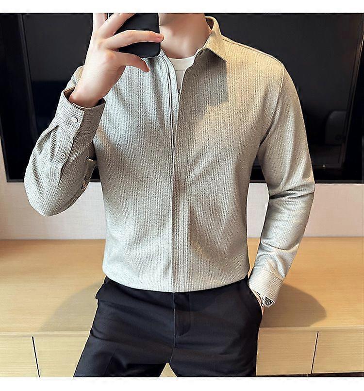 Autumn And Winter Men's Wear, Light Mature Style, Zipper Lapel, Casual, Slim, Thickened Tweed Long-Sleeved Shirt