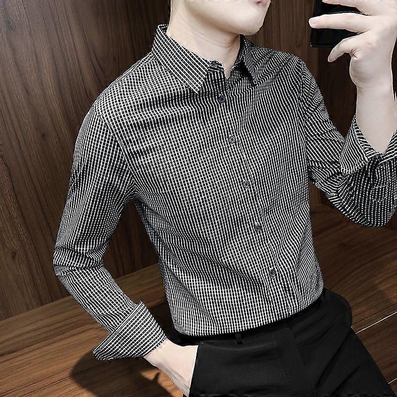 Summer Fashion Checked Men's Shirt, Long-Sleeved, High-End Style, Three-Quarter Sleeves, Business Fit, Ice Silk Long-Sleeved Shirt