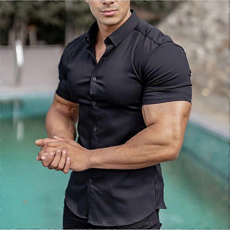 Summer Men's Slim-Fit Solid Color Cardigan Short Sleeve Shirt Casual Shirt