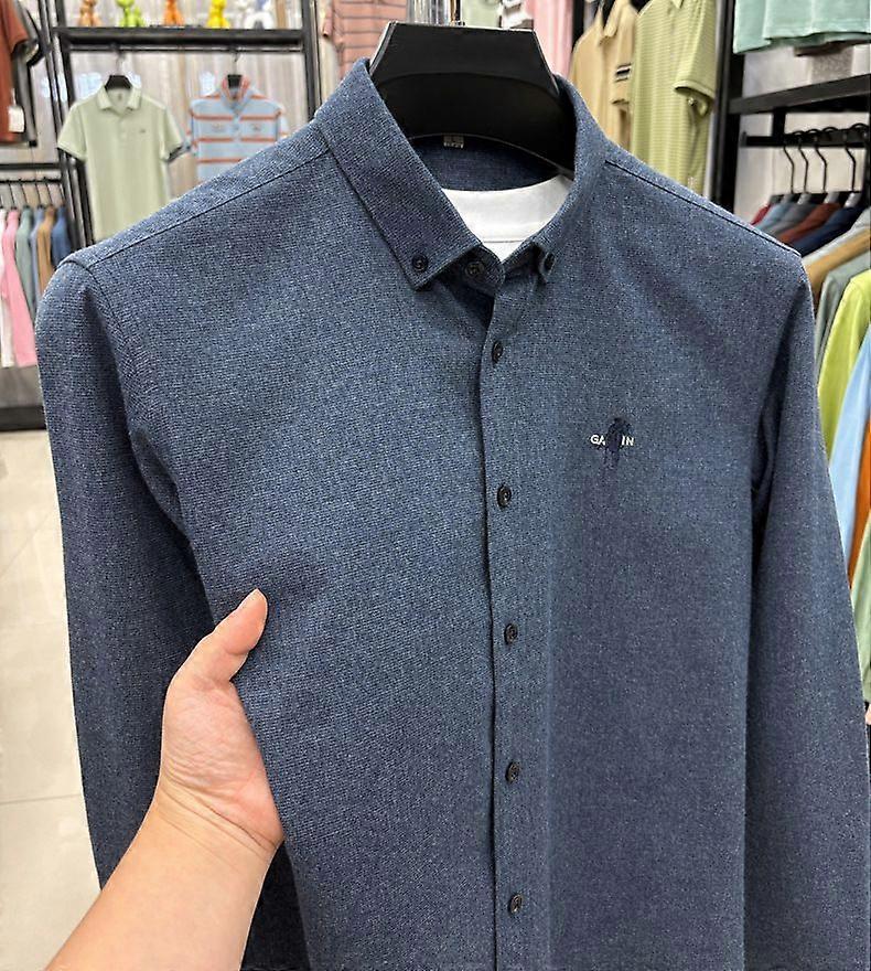 Yagoer Autumn Men's Solid-Colored Cotton Long-Sleeved Shirt, Frosted Self-Heating Shirt For Men