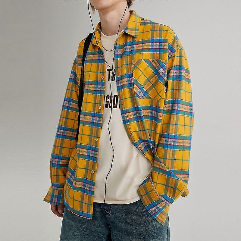 American Retro Yellow Plaid Shirt Boys Spring And Autumn Long-Sleeved Shirt Loose Casual Top Design Jacket