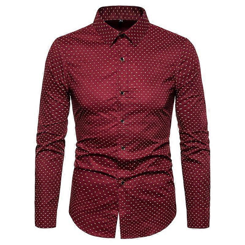 Plus-Size Men's Long-Sleeved Shirt, A Regular Printed Blue Polka Dot Long-Sleeved Shirt