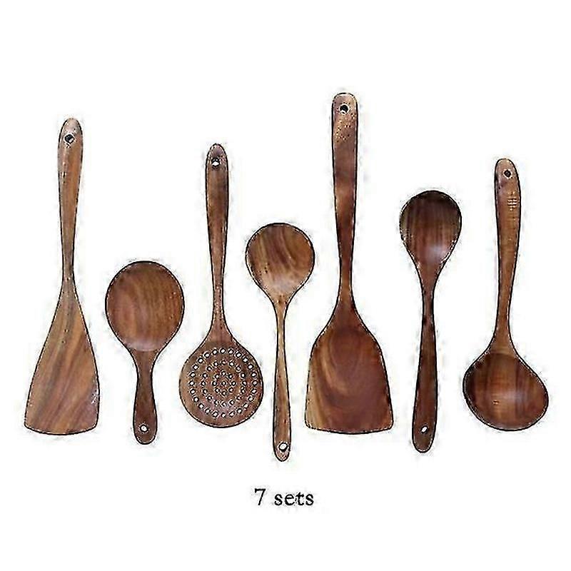 7Pcs Wooden Cooking Spoon Set Ladle Turner Rice Colander Kitchen Tools