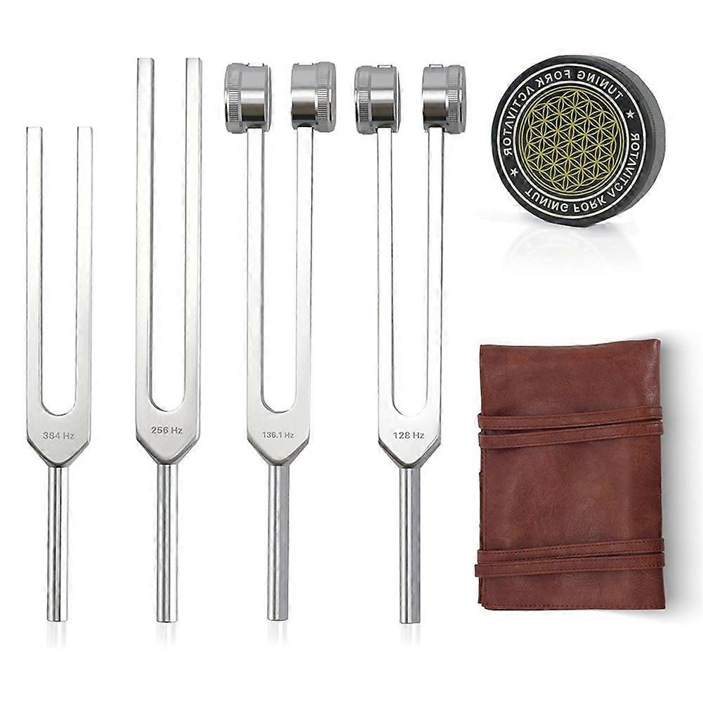 Tuning Forks for Healing Set Includes 128 Hz, 136 Hz, 256 Hz, 384 Hz & Activator Sound Healing Instruments for Yoga